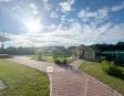 Участок полностью выложен брусчаткой