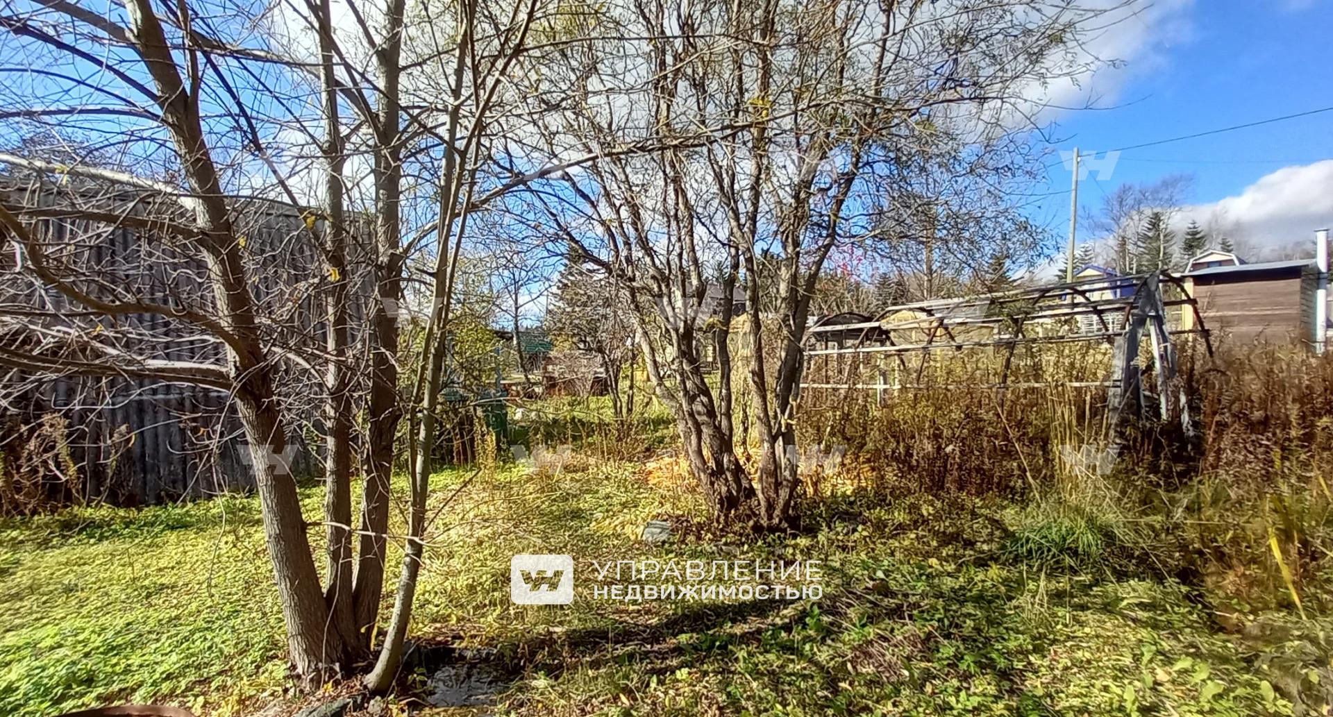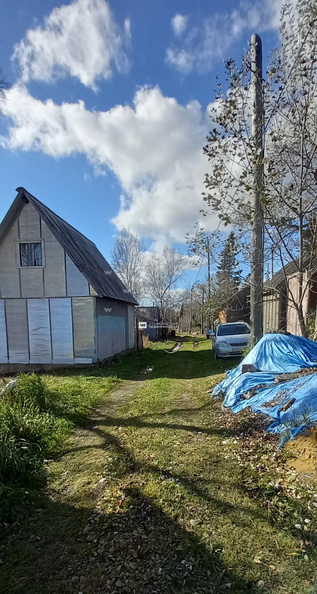 ДНТ Алгеос. К участку проходит дорога, что видно на фото. Выполнено межевание, есть постройка с местом для хранения инструментов и биотуалетом. Своя скважина. Новая линия электропередач. Планируется подведение газа. Есть клумбы и деревья. Двухэтажный домик вполне можно использовать как времянку для дальнейшего строительства. Хорошие соседи.