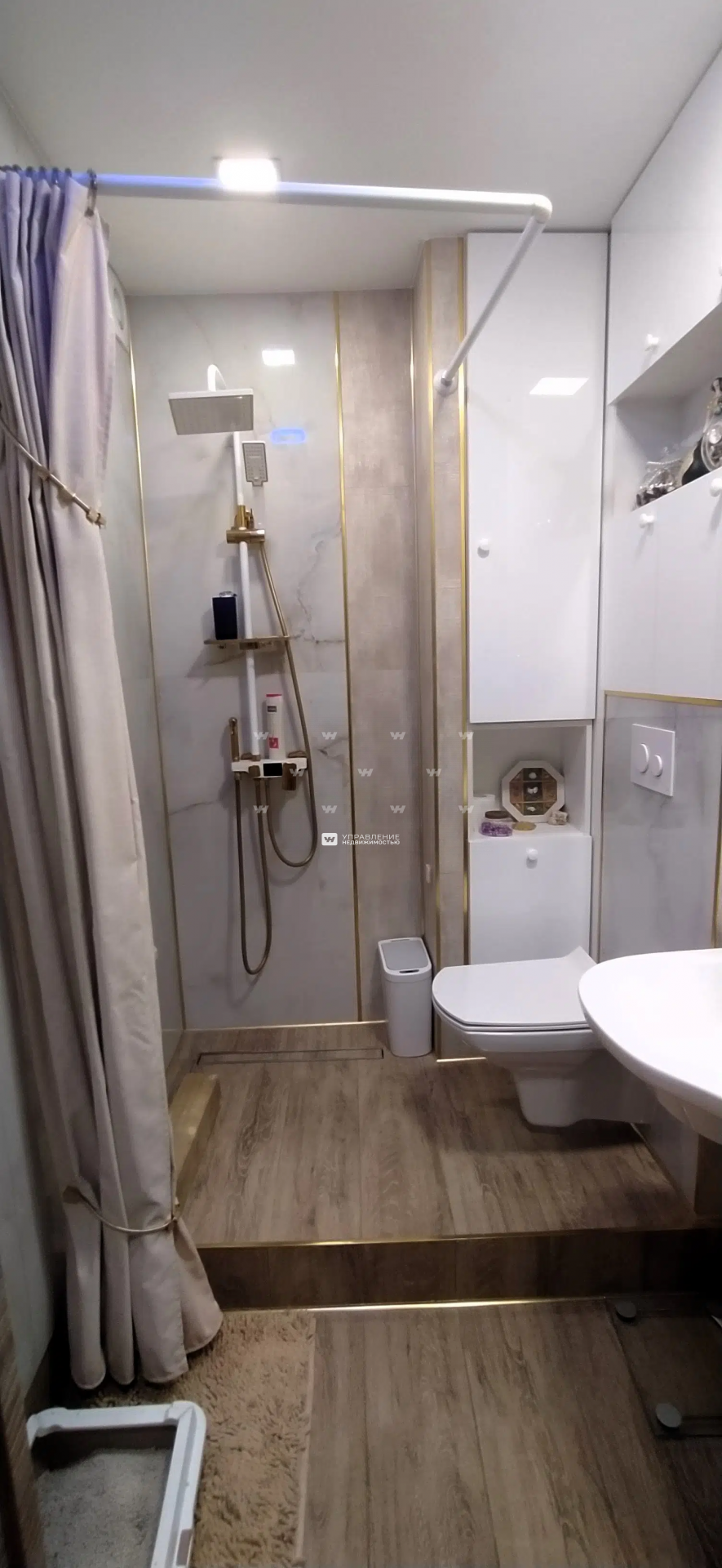 Санузел совмещенный, без ванны, новая электропроводка. Сантехника новая, качественная. Стояки заменены полностью совместно с соседями сверху. Электрический полотенцесушитель, водонагреватель.