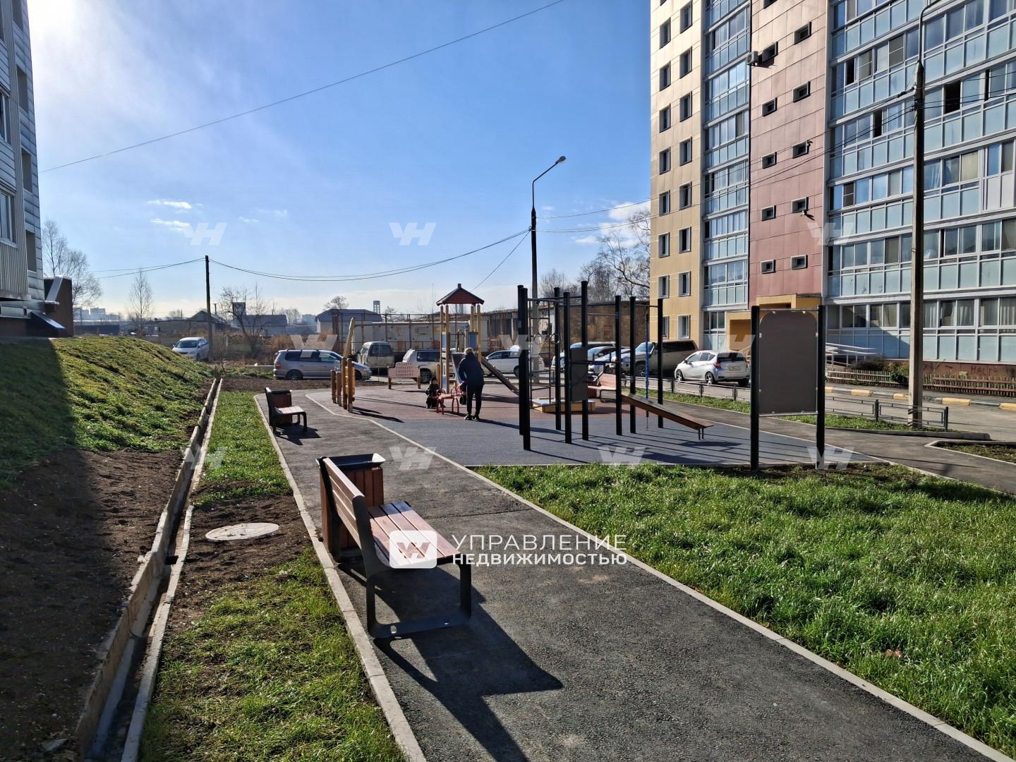 Рядом находятся детский сад "Березка", супермаркет "Пятница", аптека. Удобная транспортная развязка, автобусная остановка в шаговой доступности, недавно во дворе сделали детскую площадку и аллею. Высокий цоколь. Во дворе шлагбаум.