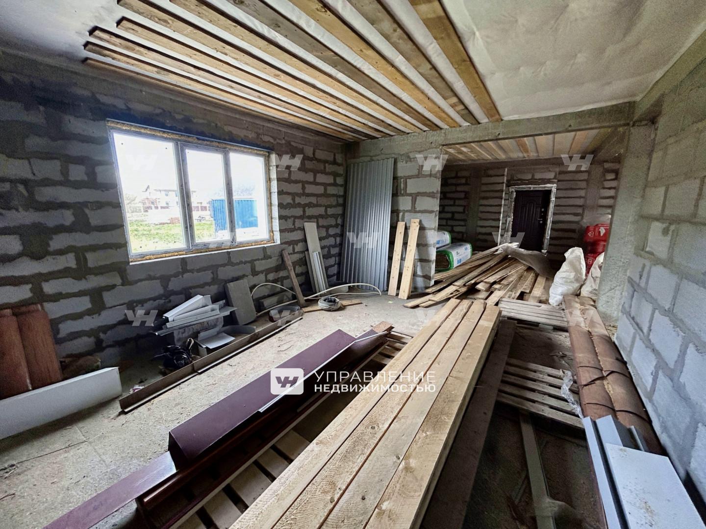 Дом выстроен на монолитном фундаменте, имеет железобетонный каркас и перекрытия из газобетона с базальтовым утеплителем. Планировка включает в себя просторную кухню-гостиную и 3 раздельные комнаты. К дому подведены все необходимые коммуникации.