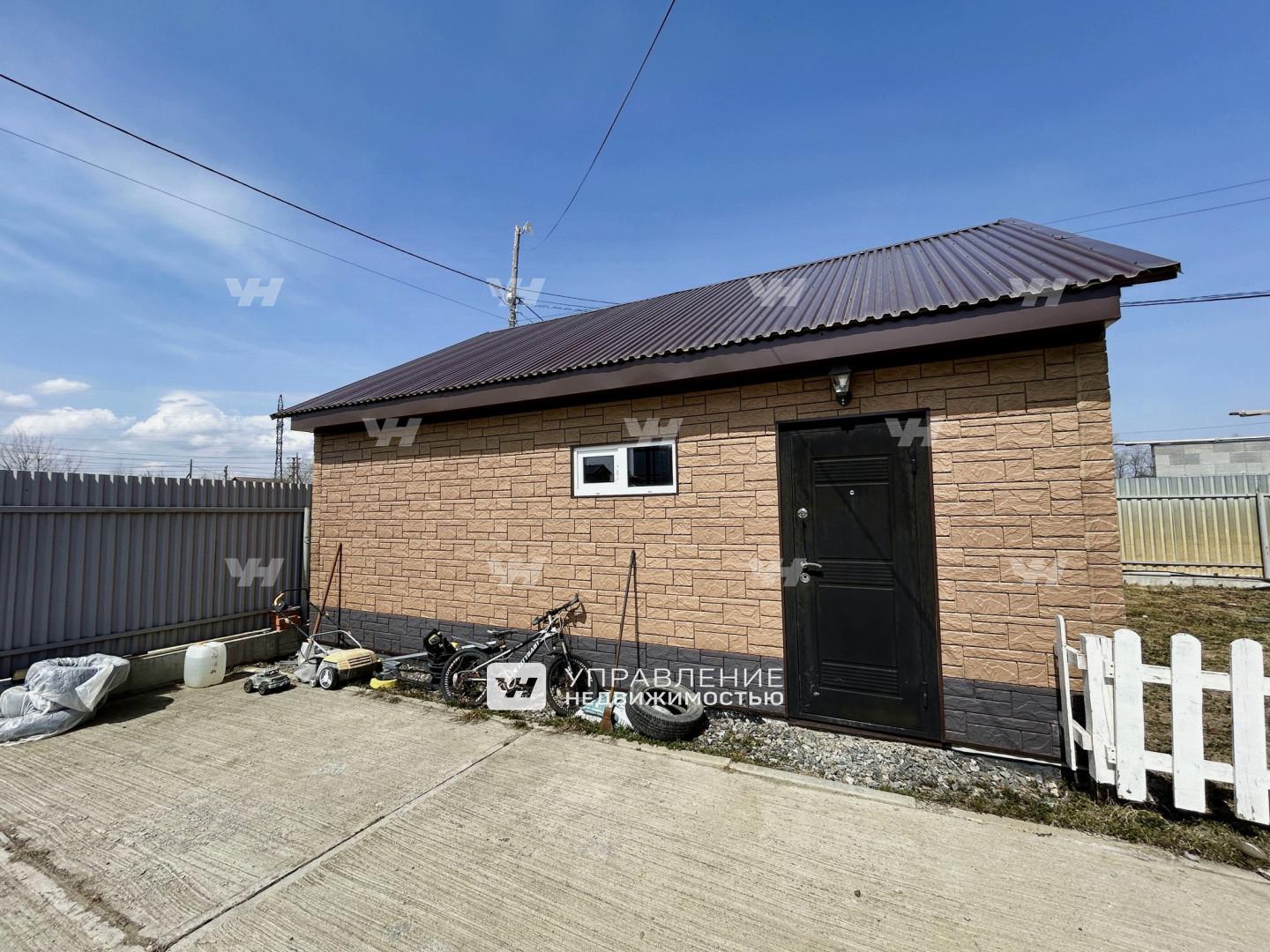 Ровный облагороженный земельный участок 10 соток. По периметру участка выстроен забор на ленточном фундаменте. На въезде установлены откатные ворота с дистанционным управление. Имеется гараж на два машино-места.